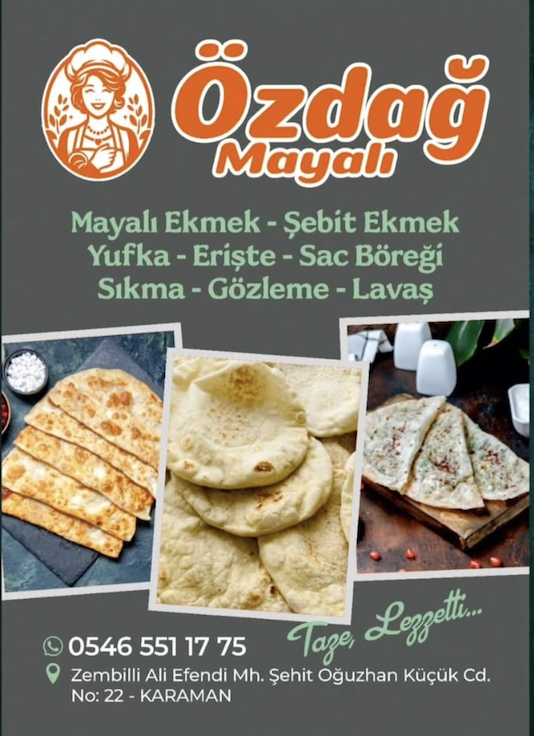 Özdağ Mayalı; Karaman’ın köklü ekmekçilik geleneğini yaşatarak, mayalı ekmekten şebite, yufkadan gözlemeye, saç böreğinden sıkmaya kadar tüm yöresel lezzetleri katkısız, doğal ve el emeğiyle sofralara taşıyan güvenin ve kalitenin adıdır.